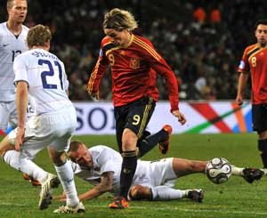 在西班牙國家隊,托雷斯也是不可替代的絕對主力。2002年,托雷斯幫助西班牙奪取了歐洲U19錦標賽,并榮膺當屆最佳射手。2004年歐洲杯到2006年世界杯,托雷斯從國家隊替補迅速成長為球隊核心主力,成功繼承了勞爾的衣缽。