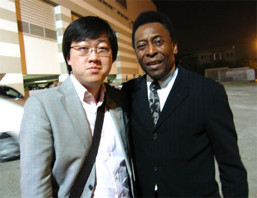 在南非當地時間6月9日晚上前往FIFA代表大會的開幕式之前,我怎么也不會想到,我可以和貝利有單獨對話的機會。但事情就是如此湊巧, 在9日晚大約9點左右,FIFA代表大會的開幕式剛剛結束之際,我利用和貝利在會展中心的停車場等車的間隙,對他進行了一個簡單的采訪。