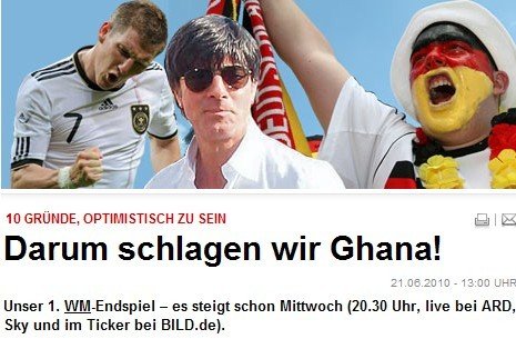 中廣網北京6月22日消息 北京時間6月22日,距德國與加納的最后一輪生死戰的開始越來越近了,德國媒體《圖片報》日前總結出了10條德國擊敗加納的另類理由: