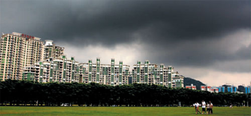8月10日,受第8號強熱帶風暴“蝴蝶”影響,廈門市區上空烏云密布。在會展中心旁,有如“烏云壓城城欲摧”。 藍添藝 攝