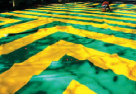 8月12日,中山公園,鮮艷的雨篷平鋪在地,享受著雨后初晴柔和的陽光,極目望去,斑斕得令人迷醉。經歷了前一天纏綿不休的風雨,它歪了、殘了,工人們正抓緊整修,期待著下一次英勇上陣,擋風阻雨。 常海軍 攝