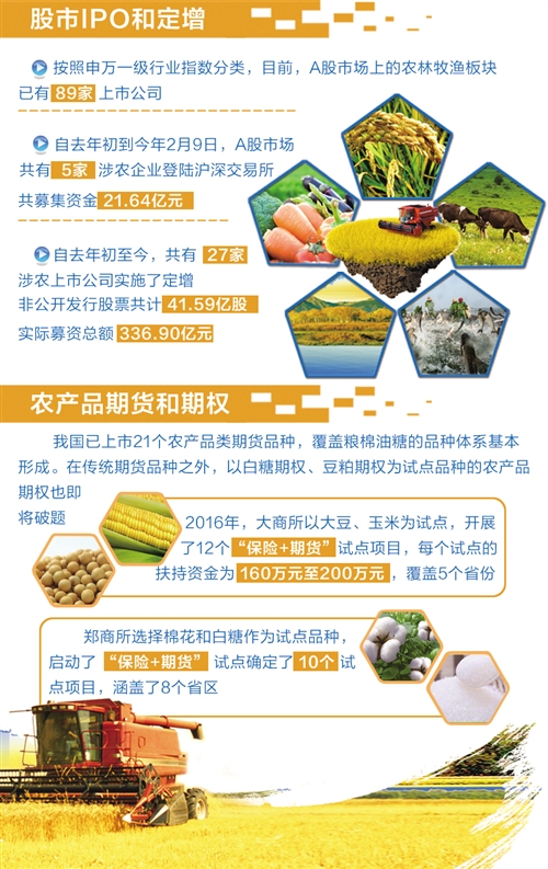 近日發(fā)布的中央一號文件明確提出,“支持符合條件的涉農(nóng)企業(yè)上市融資、發(fā)行債券、兼并重組”,“深入推進(jìn)農(nóng)產(chǎn)品期貨、期權(quán)市場建設(shè),積極引導(dǎo)涉農(nóng)企業(yè)利用期貨、期權(quán)管理市場風(fēng)險,穩(wěn)步擴(kuò)大‘保險+期貨’試點(diǎn)”。這些表述從股票市場、期貨及衍生品市場等方面,指出了資本市場服務(wù)“三農(nóng)”的發(fā)展方向。