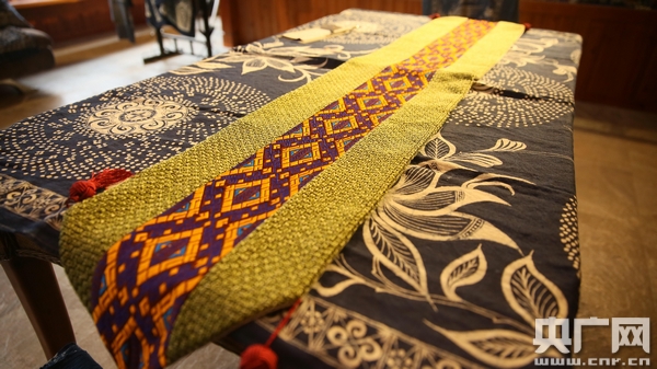 這是歐陽珍珍傳承民族藝術(shù)的一種方式,有一個傳統(tǒng)手工藝展示區(qū),它的布局和設(shè)計都是為了能讓參觀的人近距離感受苗族人的刺繡文化,主要體現(xiàn)從紡線、織布,到刺繡、蠟染等整個制作過程,這是一個讓外界的了解苗族文化的窗口。博物館還尋找懂得傳統(tǒng)手工藝的老人,讓孩子們來學(xué)習(xí)。