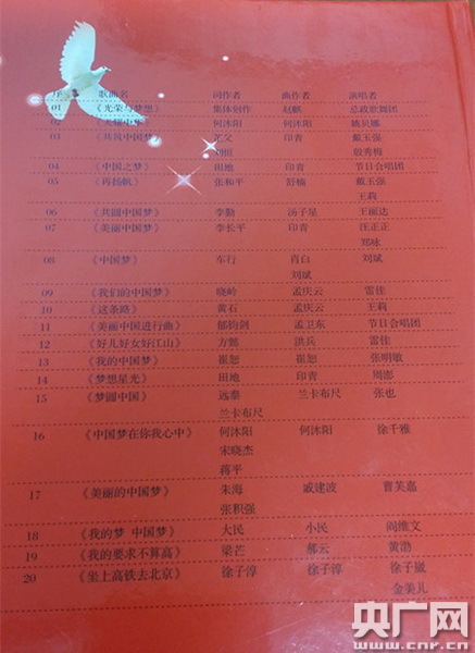 中國(guó)夢(mèng)主題新創(chuàng)作歌曲曲目單