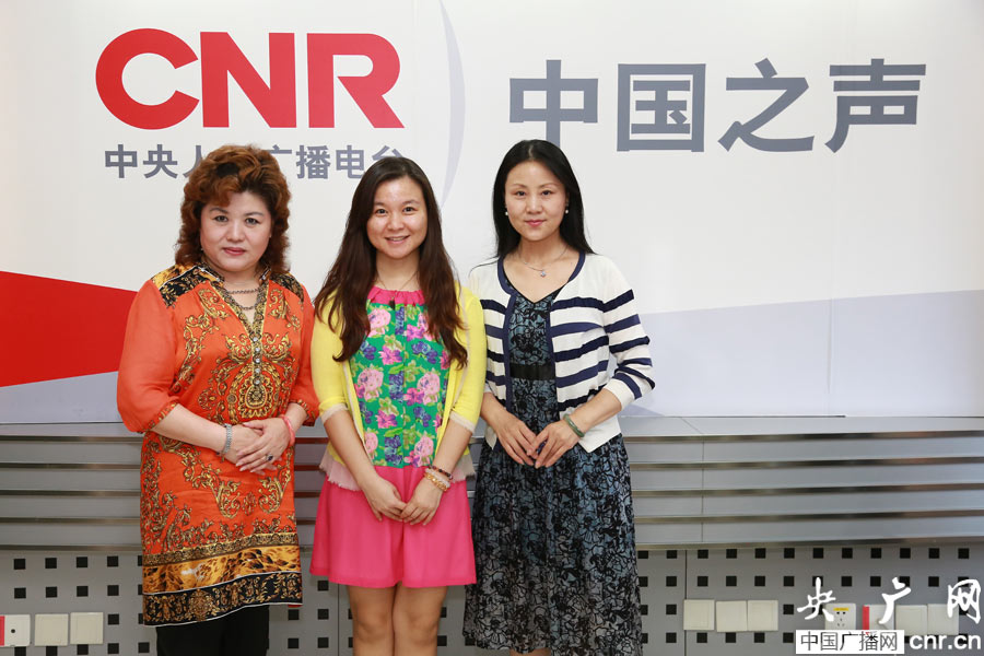 本期中國大舞臺主持人李其軒(中)與嘉賓北京市河北梆子劇團團長、著名的河北梆子演員王洪玲(右)、北京市河北梆子劇團副團長崔迎春(左)合影
