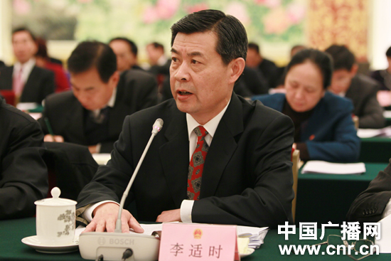 全國人大常委會法制工作委員會主任李適時發(fā)言(中廣網(wǎng)記者 徐陽 攝)