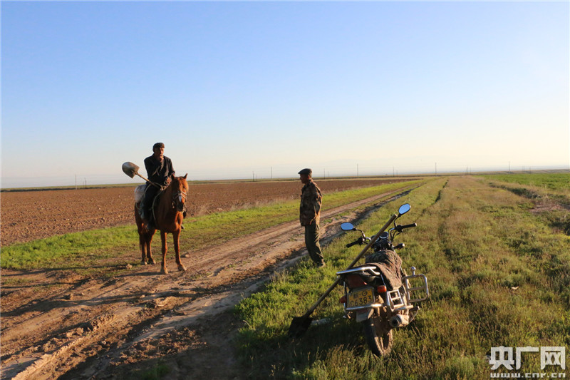 兩小時后,水坑里水不多了,阿黑收拾工具回家。路上碰見同村農(nóng)民吉格斯夾著鐵锨騎著馬來澆水,吉格斯請阿黑下午幫忙撒化肥、種苜蓿。說是幫其實(shí)也收錢,不過阿黑好說話,村民啥時有錢啥時結(jié)賬。正因?yàn)檫@,他似乎總有活干。阿黑說,辛苦點(diǎn)一天多掙一兩百,一年就能多掙幾萬,生活怎么能不好呢。說這話時,他顯得很是自豪!