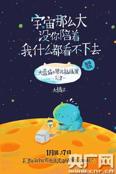 央廣網(wǎng)天津1月14日消息(記者賈立梁)原創(chuàng)插畫師陳思(大橘子)將于1月16日、17日兩天,攜最新創(chuàng)作的系列插畫作品亮相天津五大道民園西里文化創(chuàng)意街區(qū),帶來“宇宙那么大,沒你陪著,我什么都看不下去,大藍貓小男孩”主題插畫展。