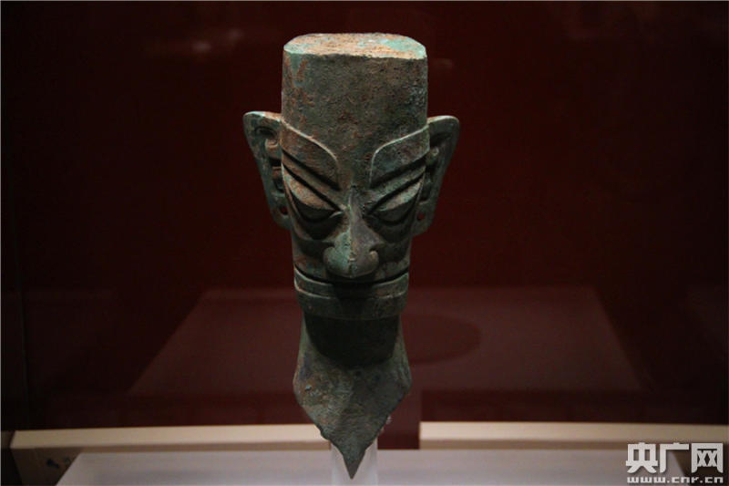 三星堆出土的青銅人頭像(央廣網發 記者賈宜超攝)