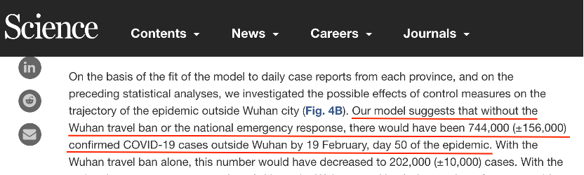 美國《科學》雜志4月發表的一項研究顯示,中國在疫情暴發最初50天采取的嚴格防疫措施,可能避免了數十萬病例的發生。文章的作者之一、牛津大學客座教授克里斯托弗·戴伊在聲明中表示:“中國的防控措施似乎已經奏效,他們成功切斷了傳播鏈,阻止了感染病例和易感人群的接觸。”
