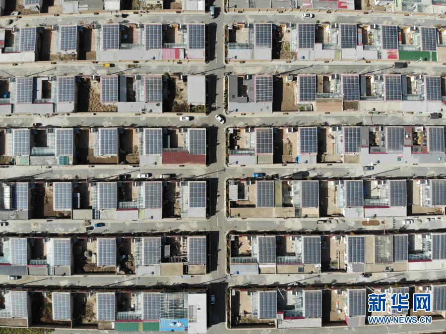 這是11月6日拍攝的青海海東市互助土族自治縣班彥新村裝有太陽能發(fā)電板的民房(無人機(jī)照片)。新華社記者 戴天放 攝