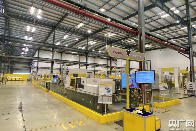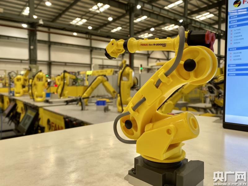 發那科機器人系統展示場智能工廠區(央廣網記者 唐奇云 攝)